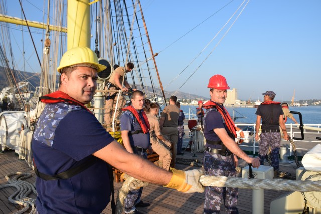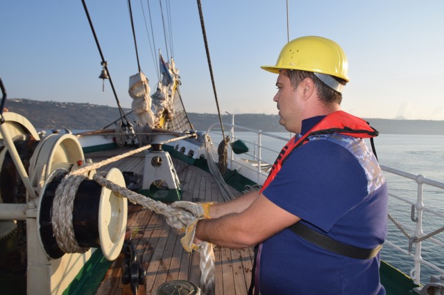 Avem parte de răsărituri superbe, aici în Souda, în fiecare dimineață, în timpul adunării de dimineață. Azi am ambarcat motorină la bord și ultimele alimente. Suntem în a treia zi de escală și tot echipajul se bucură de tot ceea ce poate oferi insula Creta, chiar dacă dimineața aceasta este înnorat și plouă puțin. Tot azi, a fost verificată și șalupa, lăsată la apă de ieri. Timp de aproape o oră am brăzdat apele Golfului Souda în toate regimurile de viteză și diferite manevre. Fiind utilizată mai rar la bord, este bine să fie verificată atunci când avem posibilitatea, la fel și manevra de coborâre și ridicare a șalupei, unde marinarii trebuie să cunoască și să fie familiarizați cu manevra respectică.