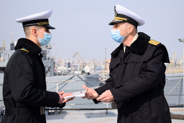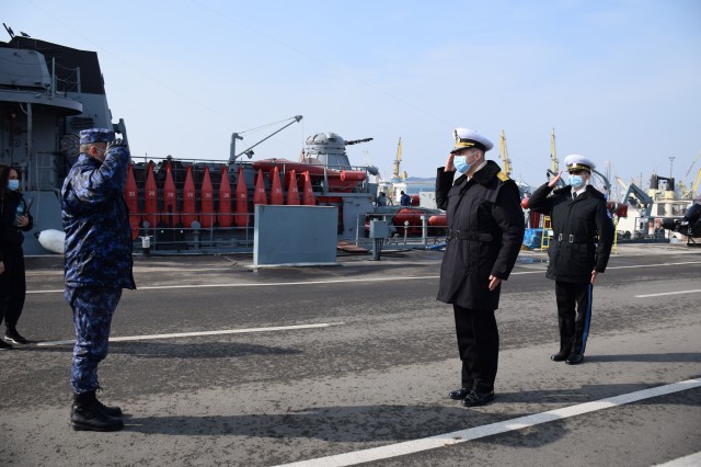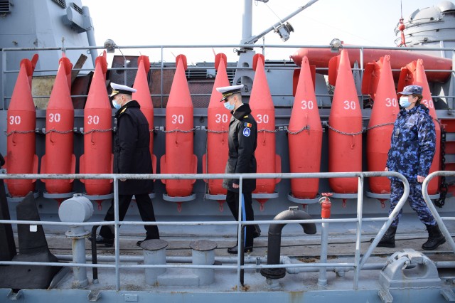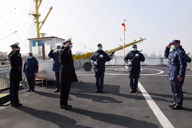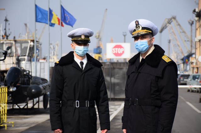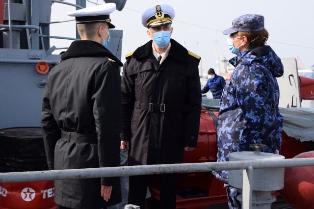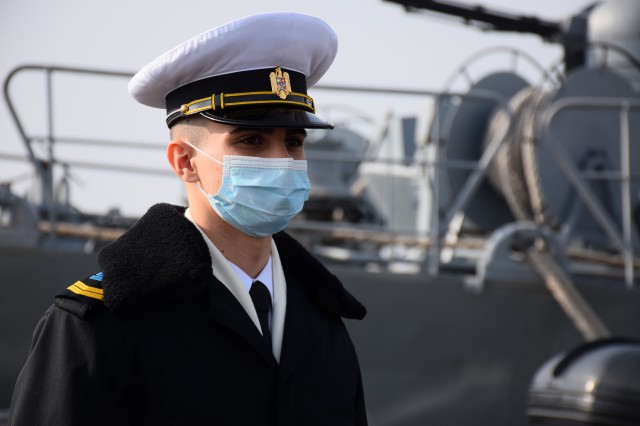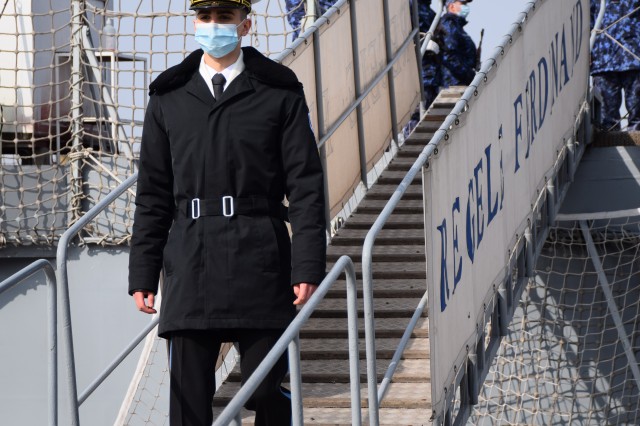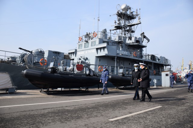 În continuare, tânărul cadet a primit invitația de a lua parte la o prezentare a navelor militare aflate la cheu, în portul militar Constanța. Însoțit de contraamiralul de flotilă Valentin IACOBLEV, a urcat la bordul dragorului maritim „Sublocotenent Alexandru Axente”, prima navă pe care a activat actualul șef al Flotei, după absolvirea Institutului de Marină (Academia Navală „Mircea cel Bătrân” din prezent), și pe care, ulterior, a comandat-o, precum și la cel al fregatelor „Regele Ferdinand” și „Regina Maria”, pe cea din urmă conducând-o în numeroase misiuni internaționale.