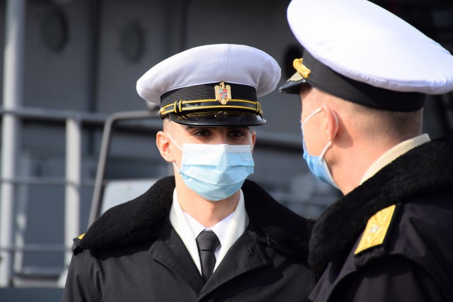 Pentru câteva ceasuri, comandantul Flotei, contraamiral de flotilă Valentin IACOBLEV, a „predat” comanda unității, astăzi, 25 februarie, elevului caporal Matteo Damaschin de la Colegiul Național Militar „Alexandru Ioan Cuza” din Constanța, care a trăit o experiență unică pentru un elev militar.
