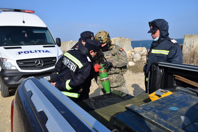 Scafandrii militari au identificat materialul periculos, după care l-au deplasat într-un loc sigur pentru a fi distrus, îndeplinind cu succes misiunea încredințată.
