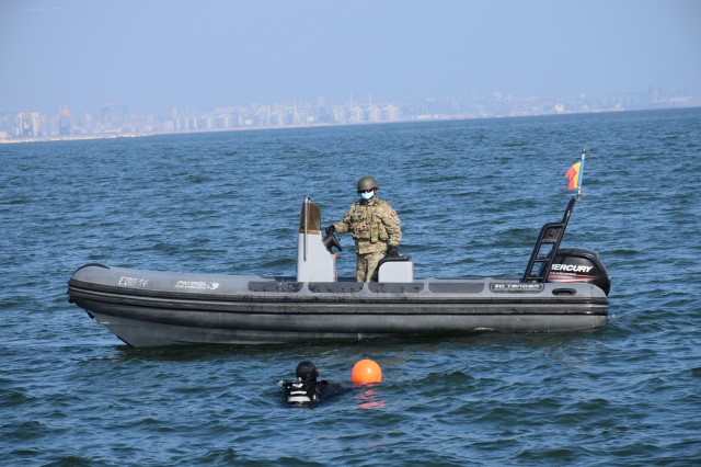 Exercițiul multinațional „Poseidon 21”, organizat de Forțele Navale Române și aflat în plină desfășurare în Marea Neagră, a cuprins și executarea unei secvențe de instruire interinstituțională, între Inspectoratul pentru Situații de Urgență „Dobrogea” al județului Constanța și scafandrii de luptă EOD (Explosive Ordnance Disposal).