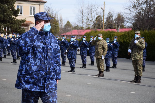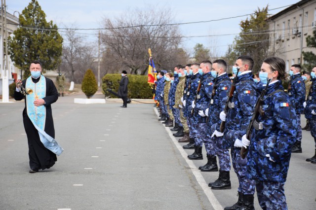 Șeful Statului Major al Forțelor Navale, contraamiral Mihai Panait, a efectuat vineri, 12 martie, o vizită de lucru în garnizoana Mangalia, unde a participat la festivitatea de depunere a Jurământului Militar de către 86 de soldaţi profesioniști, organizată la Şcoala de Aplicaţie a Forţelor Navale „Viceamiral Constantin Bălescu” din Mangalia.