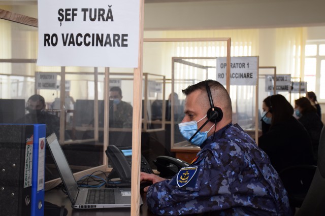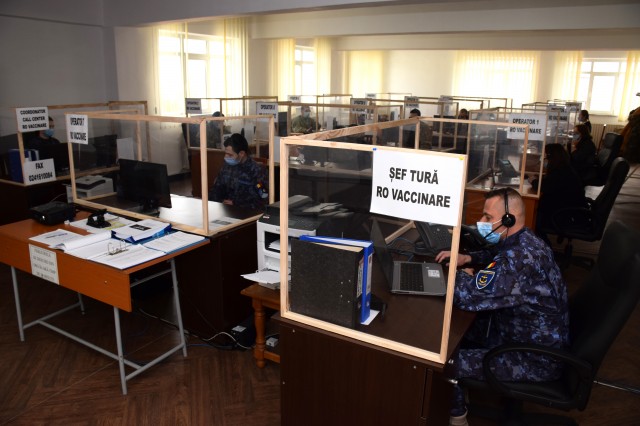 Forțele Navale Române asigură personal și tehnică pentru funcționarea a două call-center-uri, unul în Constanța, la Baza Logistică Navală, și unul în Tulcea, la sediul Secției 325 Logistice, iar pentru call-center-ul de la Brăila Forțele Navale Române asigură periodic, prin rotație, personal pentru preluarea apelurilor primite din partea populației. Operatorii marinari au preluat săptămânal, până în prezent, peste 10.000 de solicitări pentru programare la vaccinare sau pentru suport informațional cu privire la campania anti-COVID-19.