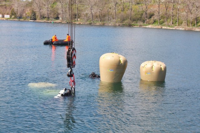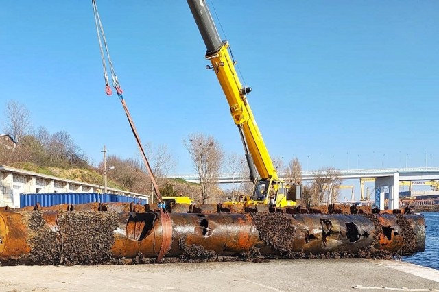 Scafandrii militari readuc la suprafață epava unui ponton