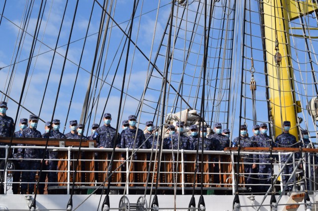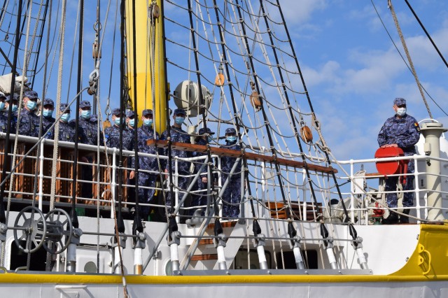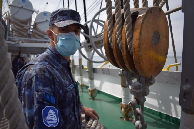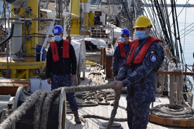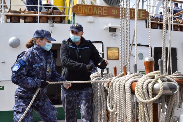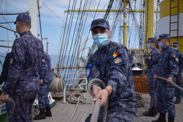 Distribuiți în formații la puntea centru, pe teugă, pe dunetă și pe etalon, elevii militari trag discret cu ochiul la manevrele executate pentru plecarea din port. Este un moment deosebit pentru fiecare dintre ei, căci puțini sunt cei care au făcut până acum o călătorie cu vaporul. Senzațiile sunt cu totul noi, iar elevii și-ar fi dorit să le poată împărtăși, asemeni generațiilor anterioare de cadeți de la bordul navei-școală, cu părinții și prietenii, care să-i privească de pe dană în timp ce silueta navei devine din ce în ce mai mică pe măsură ce dispare la orizont. Restricțiile impuse de pandemie nu au făcut posibil acest lucru, iar cei de acasă le-au putut fi alături doar cu mintea și cu sufletul.