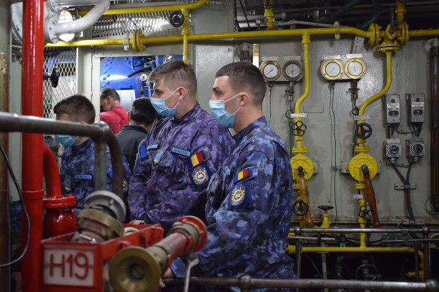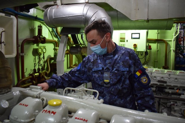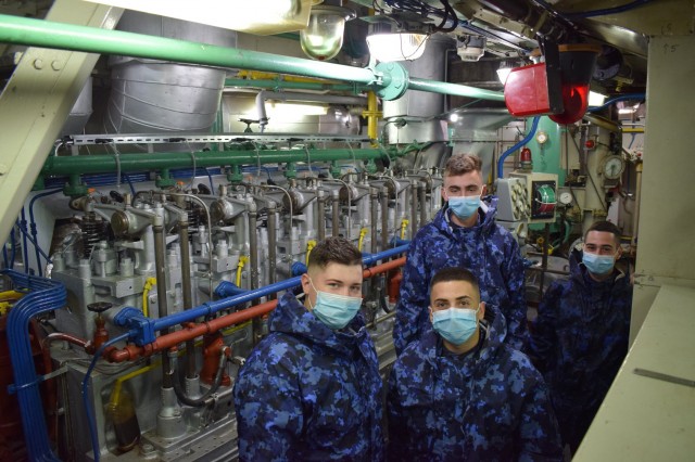 În paralel cu aceste două activități desfășurate sub puntea teugă, la mică distanță, la subsolul dunetei, o altă grupă de elevi își face loc prin atriile și ventriculele Compartimentului Mașini. Încercând să nu încurce prea mult treburile membrilor de echipaj care îngrijesc sursa alternativă de propulsie a velierului, elevii militari observă motoarele și diesel generatoarele, în timp de instructorii militari le explică și le detaliază funcțiile acestora. Docili, elevii ascultă cu atenție, iar în privirile lăsate libere de măștile albastre de unică folosință se poate citi sfiala de a pune întrebări, de teamă să nu întrerupă fluxul de informații ce le este oferit. Sunt nerăbdători să vadă cilindrii în mișcare, însă, tot asemenei unei femei frumoase și inteligente, nava-școală „Mircea” nu-și dezvăluie misterele prin prima, ci se cere explorată, înțeleasă, îngrijită cu delicatețe și iubită cu aceeași măsură largă cu care ea oferă cunoaștere.