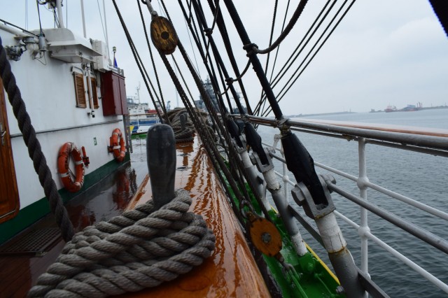 Încă de la prima oră, frumusețea răsăritului de soare a fost umbrită de mantia plumburie de nori care întuneca cerul. În acest peisaj bacovian, care integrează aproape perfect siluetele celor două fregate acostate în Portul Militar, eleganța desăvârșită a navei-școală „Mircea” se distinge ca desprinsă dintr-o poveste. Eleganța catargelor cu parâmele de manevrare a velelor perfect întinse epatează din orice unghi, asemeni zâmbetului misterios elaborat pe o pânză cenușie de mâna genială a unui pictor renascentist.