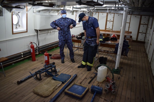Dincolo de peretele de chesoane al cazărmii 3, în cazarma 2, grupele de electricieni și de mecanici asistă la o prezentare a echipamentului de vitalitate care se găsește la bordul unei nave. Noțiunile privind rolul de vitalitate nu le sunt străine elevilor militari, astfel încât, partea a doua a atelierului este una practică și îi implică direct. Scenariul este simplu: un incendiu a izbucnit în spatele unei uși închise. Maiștrii militari Marian Dimancea și Alexandru Opincaru le pun elevilor la dispoziție toate ustensilele necesare intervenției și îi lasă să acționeze, conform teoriei învățate. Intervenția simulată este urmărită și corectată pas cu pas. Vitalitatea la bordul navei nu este un punct ce poate fi tratat cu superficialitate. Echipa de vitalitate de la bord poartă responsabilitatea integrității navei și, în cazuri extreme, de siguranța manevrelor sale pot depinde vieți.