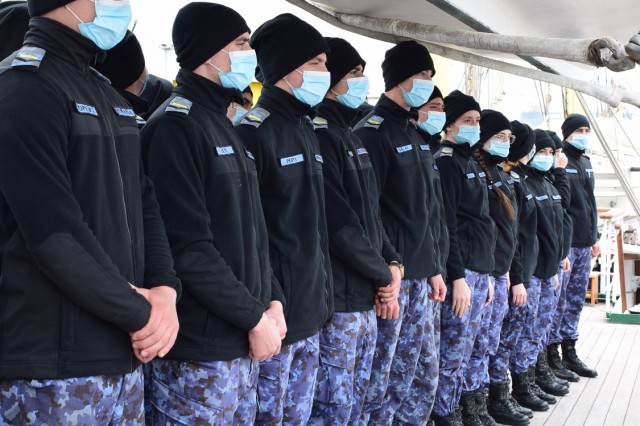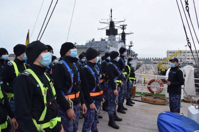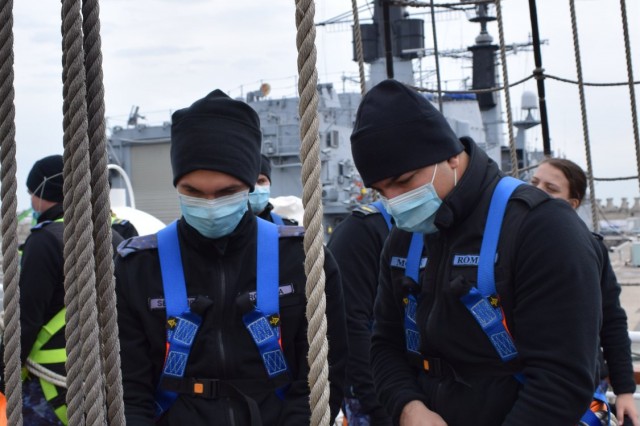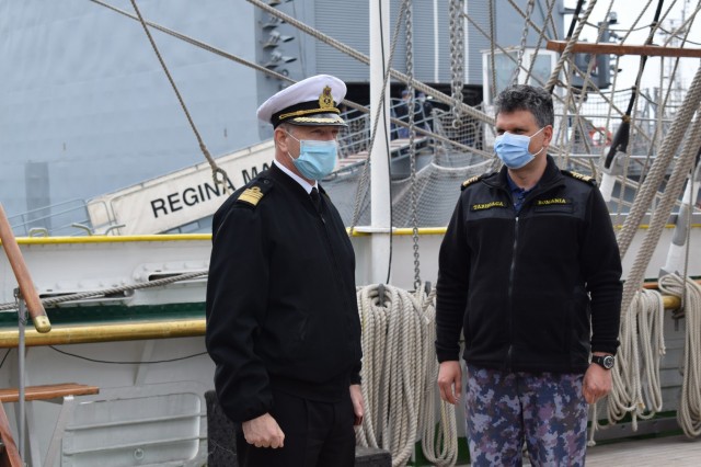La coborârea din arboradă, la finalul antrenamentelor de astăzi, la puntea centru, pe elevii militari i-a așteptat comandantul Școlii Militare de Maiștri Militari a Forțelor Navale, comandorul Nicu Chirea. Acesta a dorit să îi asigure pe elevi de considerația și admirația sa pentru modul în care și-au desfășurat activitatea la bric în ultima săptămână, dar și să le facă tradiționalele urări marinărești pentru plecarea în marș.