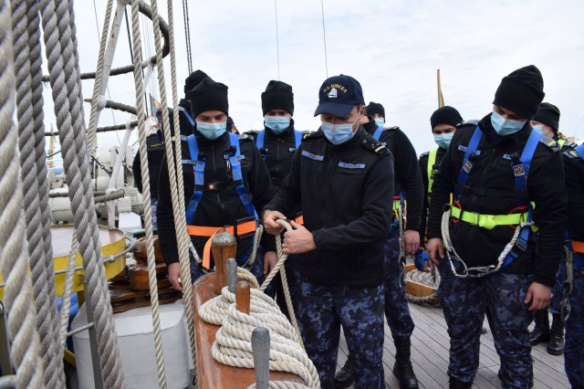 În paralel cu rolul la brațe, o altă grupă de elevi militari se află pe bordul opus alături de maistrul militar principal Ionuț Comună, un recunoscut maestru al lucrărilor de matelotaj, care îi învață despre volte și filat. Până nu de mult, m.m.pr. Comună a făcut parte din echipa de instructori militari a Școlii Militare de Maiștri Militari a Forțelor Navale, în cadrul catedrei de Rachete navale. Ani la rând a fost însă și instructor la bordul navei-școală „Mircea” pentru generații întregi de elevi și studenți militari, care l-au perceput de fiecare dată ca pe un foarte bun păstrător al tradițiilor marinărești.