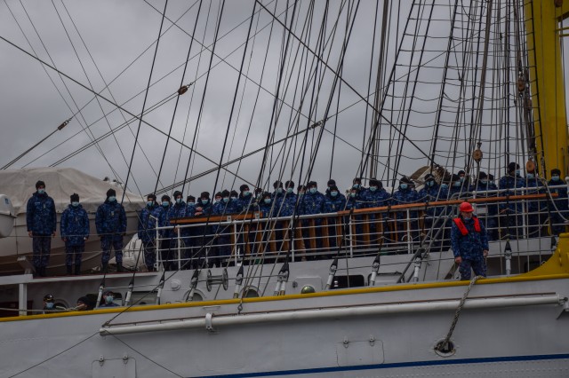 Nava-școală „Mircea” a acostat miercuri, 28 aprilie, în portul militar Constanța, după ce a executat un marș de instrucție în apele Mării Negre, cu elevii din anul I de la Școala Militară de Maiștri Militari a Forțelor Navale.