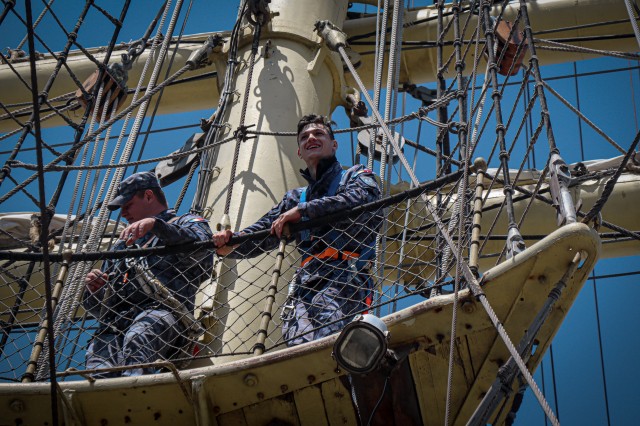 Studenții militari din anul al II-lea de la Academia Navală „Mircea cel Bătrân” participă la un marș de instrucție cu nava-școală „Mircea”, pe itinerariul Constanța – Sulina – Mangalia – Constanța, care se desfășoară în perioada 10-14 mai, pe parcursul căruia studenții vor desfășura o serie de activități marinărești specifice, sub îndrumarea instructorilor de la bordul velierului.