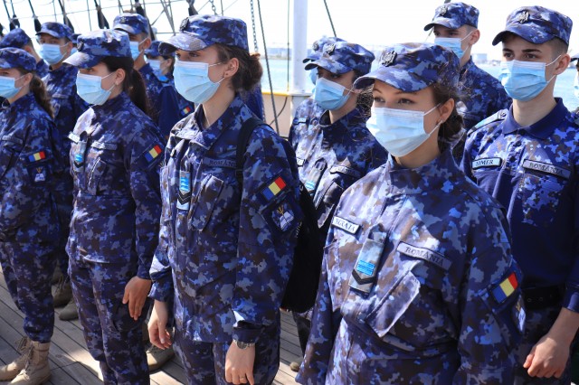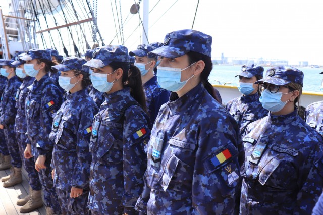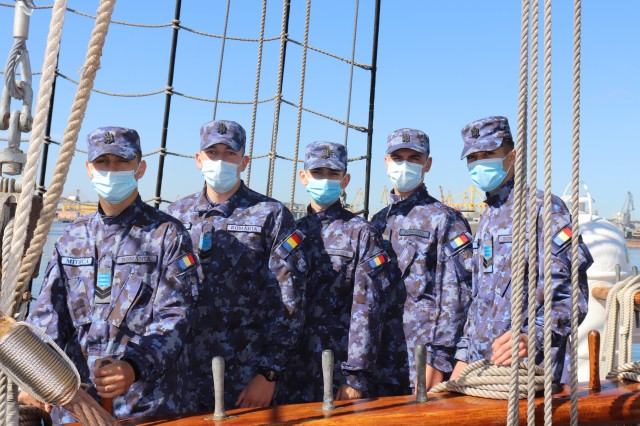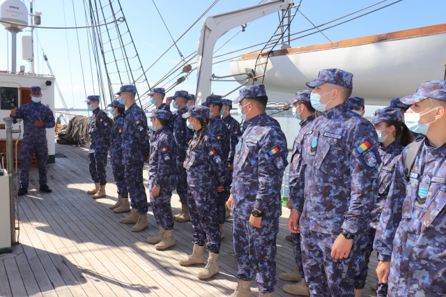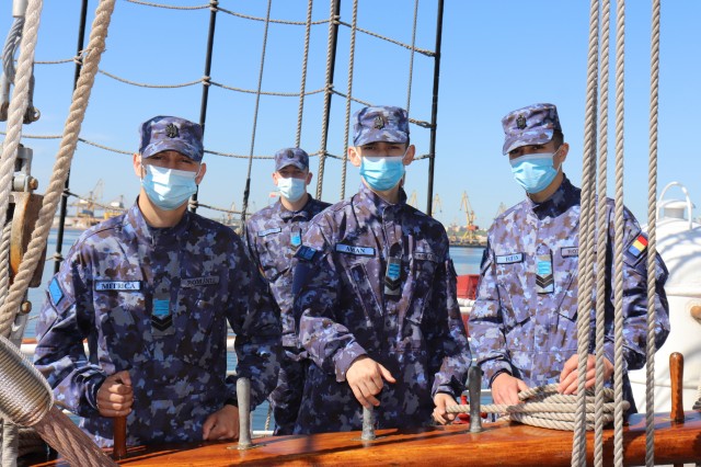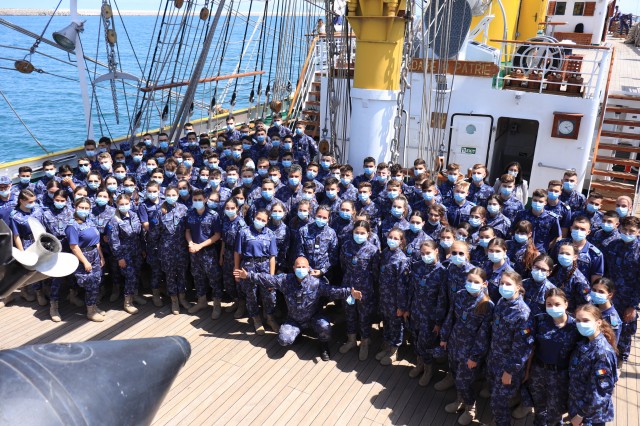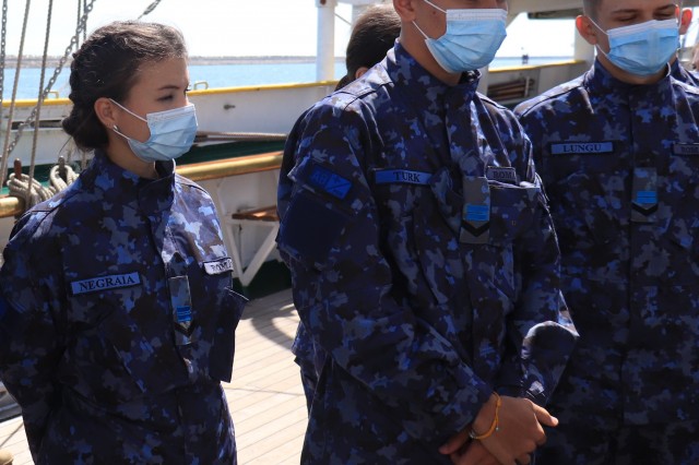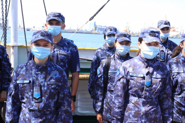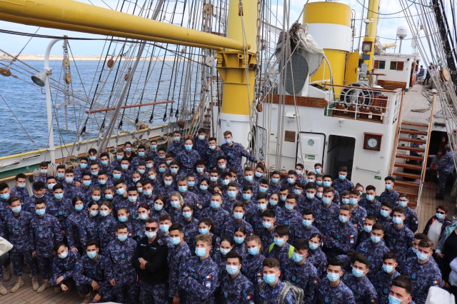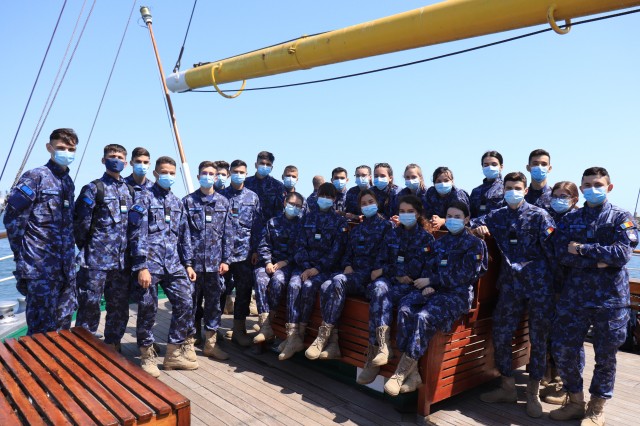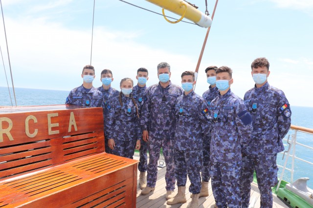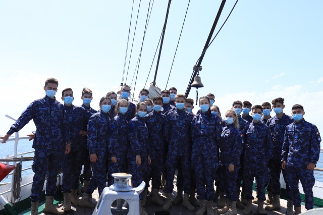 Elevii Colegiului Național Militar „Alexandru Ioan Cuza”, în marș cu nava-școală „Mircea”