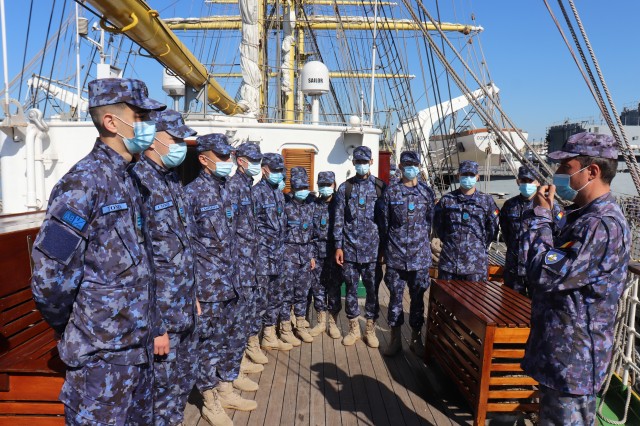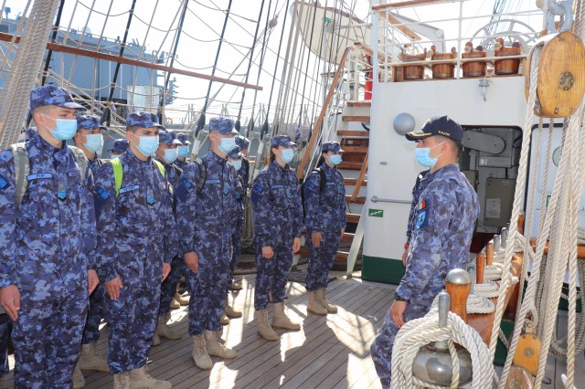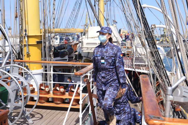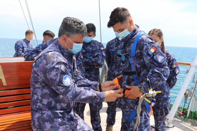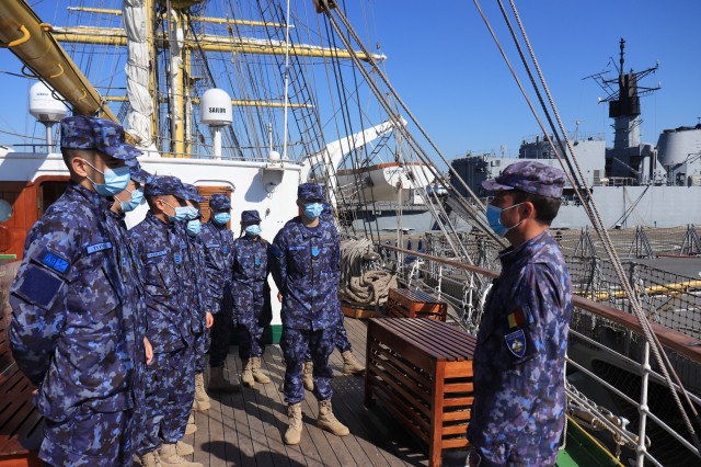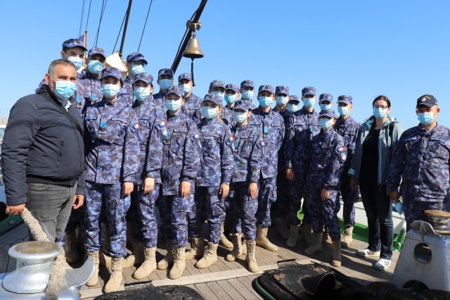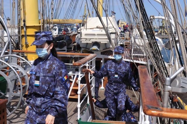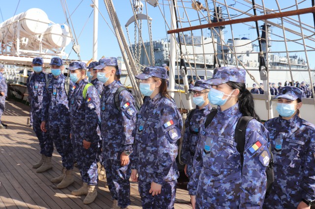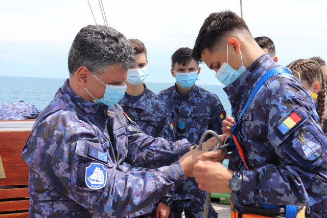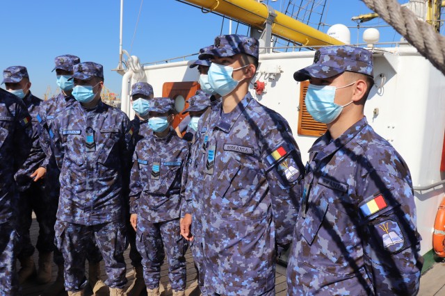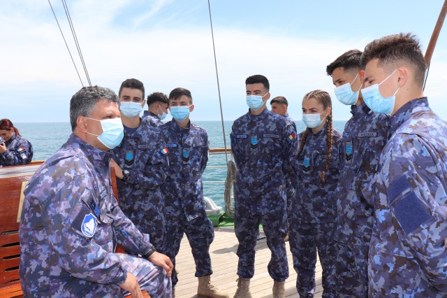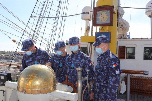 Elevii Colegiului Național Militar „Alexandru Ioan Cuza”, în marș cu nava-școală „Mircea”