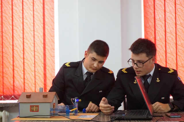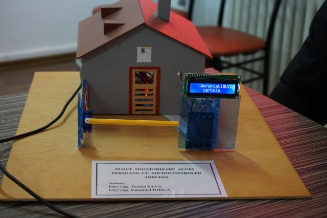 Lucrarea înscrisă în competiție de către cei doi elevi poartă denumirea „Punct de monitorizare acces persoane, cu microcontroler Arduino” și a fost realizată sub coordonarea șefului Catedrei de Electromecanică Navală din cadrul Școlii Militare de Maiștri Militari a Forțelor Navale, căpitan-comandor Vladimir Ablai și a doamnei profesor Irina Pavel.