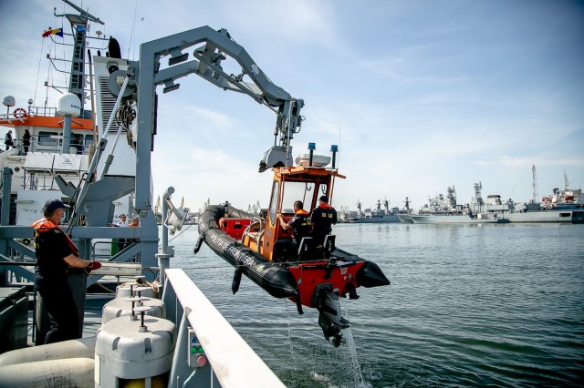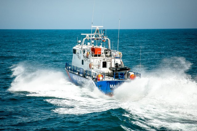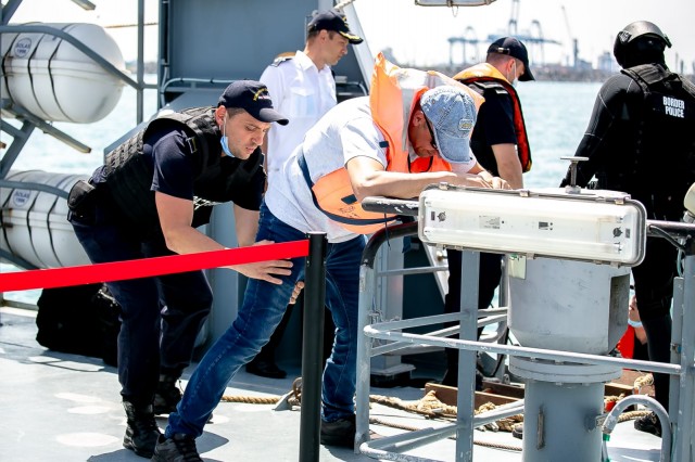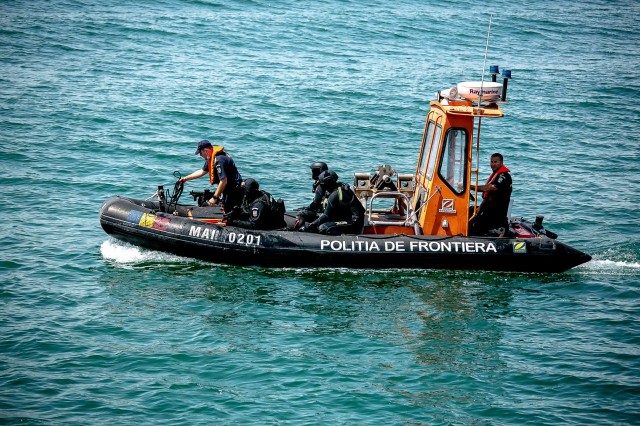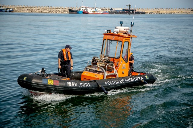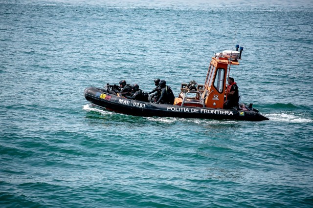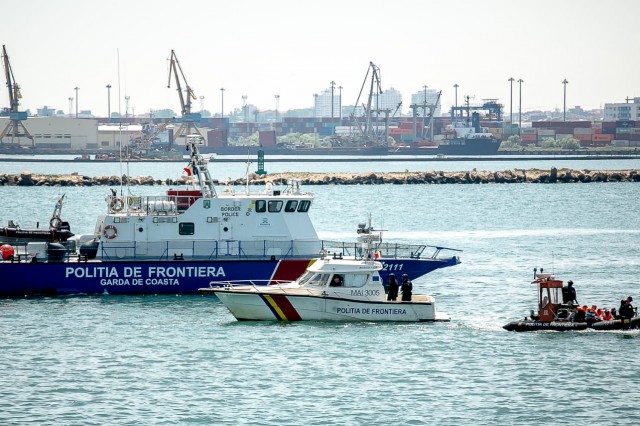 Joi, 27 mai, a fost organizat un exerciţiu pe mare, având ca obiectiv simularea modului de acţiune în cadrul operaţiilor specifice de combatere a migraţiei pe mare.