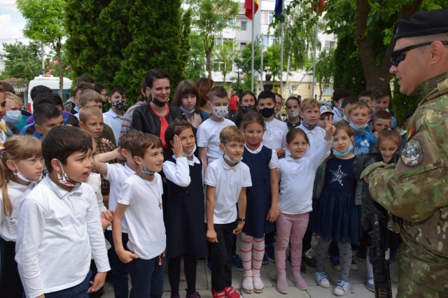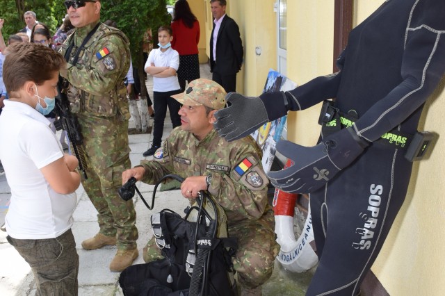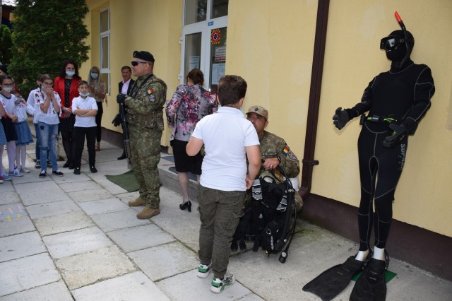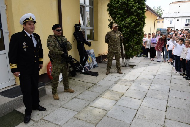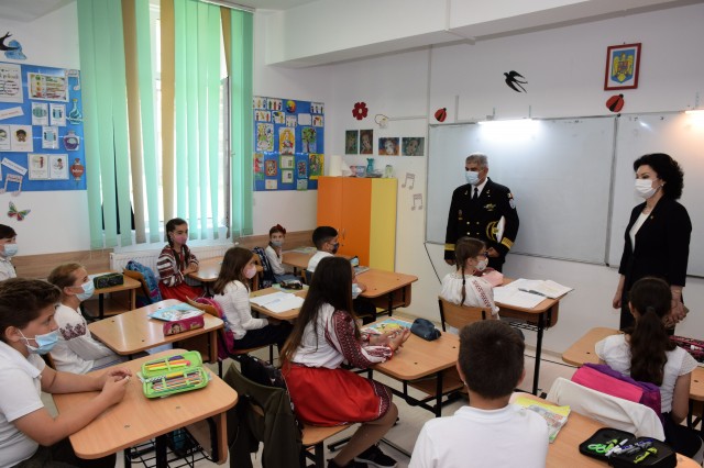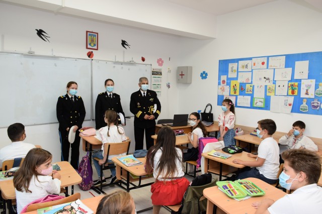 Vizita marinarilor militari la Școala Gimnazială „Comandor Alexandru Cătuneanu” din satul Lunca Cetățuii, Județul Iași