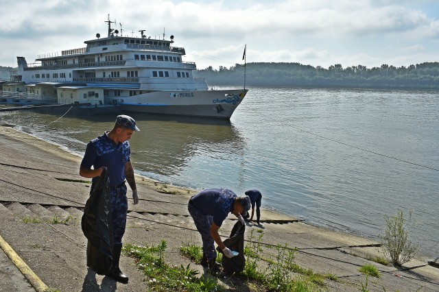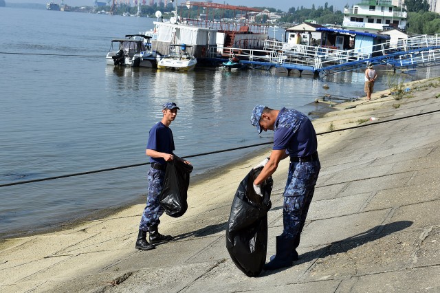 Cu această ocazie, militarii marinari ai Flotilei Fluviale au participat la o acțiune de ecologizare a malurilor Dunării. Echipați cu mănuși de protecție și saci pentru strângerea deșeurilor, militarii au luat la pas faleza, apoi malurile din preajma Portului Militar, și au reușit să colecteze zeci de saci de deșeuri.