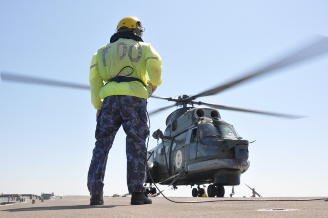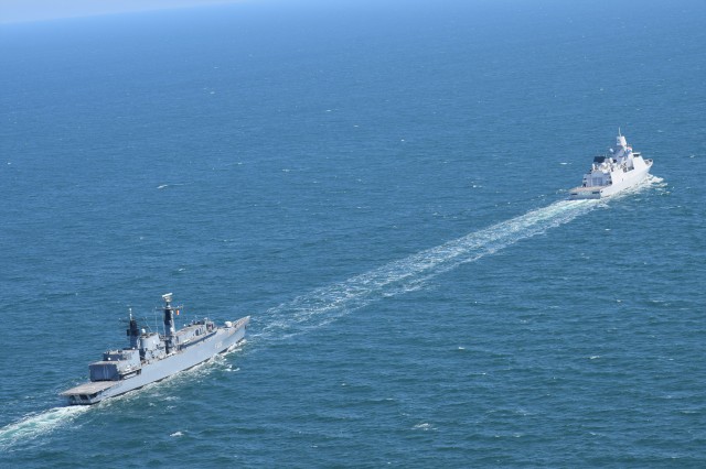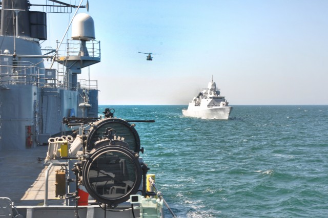 La plecare, nava a executat o serie de exerciții împreună cu fregata „HNMS Evertsen” din Țările de Jos, în vederea dezvoltării capacității de acțiune în comun. Au fost exersate manevre și evoluții care au cuprins trecerea navelor prin diferite scenarii, tehnici și proceduri de R.A.S. (Replanishment At Sea - realimentare pe mare), precum și acțiuni complexe, în cadrul serialelor de luptă antiaeriană, cu implicarea aeronavelor de tip MIG 21 LANCER ale Forțelor Aeriene Române.