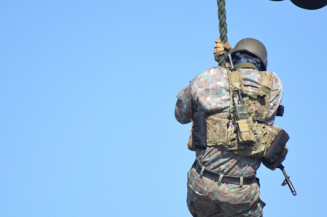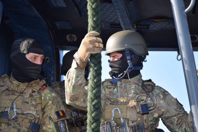 Suflul elicei deasupra apei au preschimbat stropii de apă într-un frumos curcubeu, ce au consimțit inserția rapidă a scafandrilor de luptă pe coardă. Aceștia au alunecat până pe punte cu precizia și siguranța date de antrenamentele repetate din cadrul misiunilor pe mare și uscat.