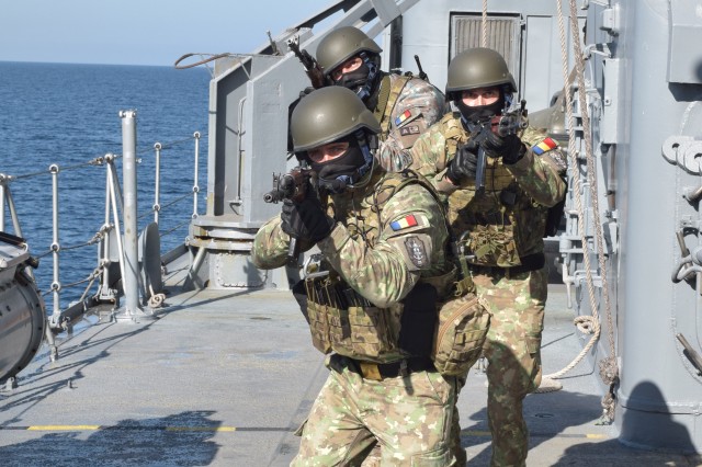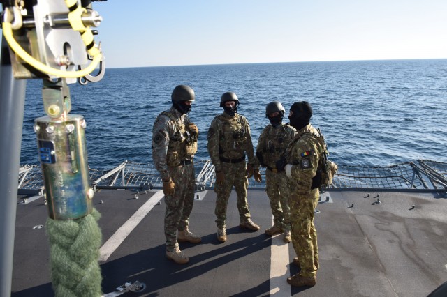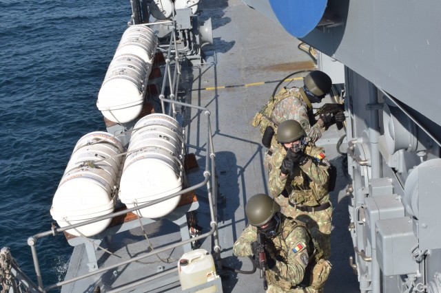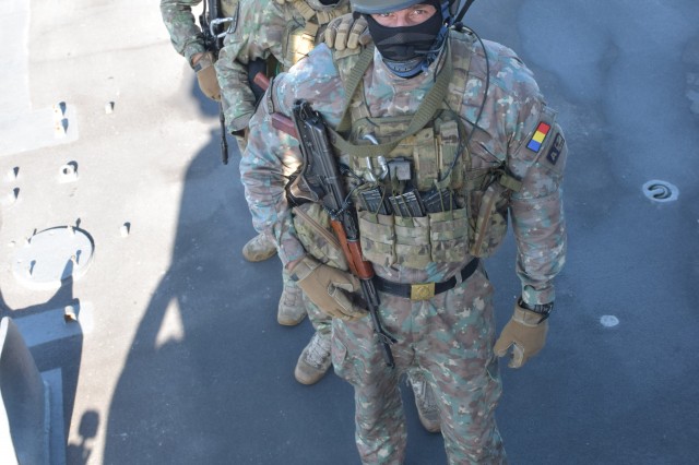 Cercetarea navei se realizează minuțios, fiecare punte a fost luată în vizorul specialiștilor conform procedurilor NATO de inserție de la bordul elicopterului într-o zonă ostilă. După neutralizarea suspecților și eliberarea ostaticilor, echipa de scafandri de luptă a raportat „Misiune îndeplinită!”.