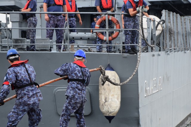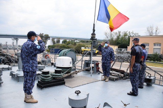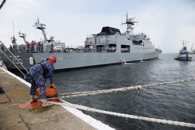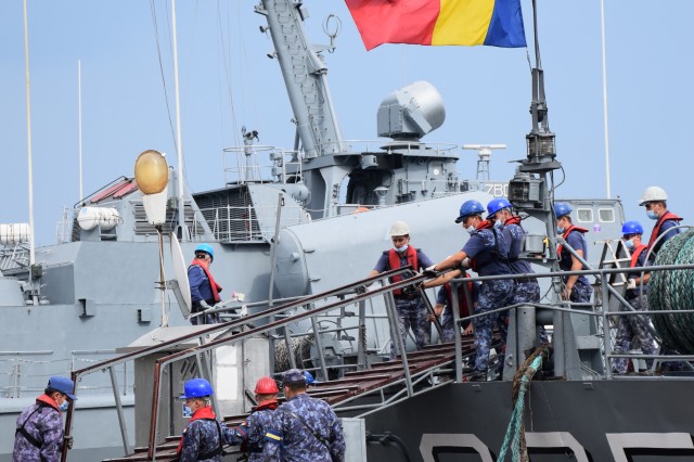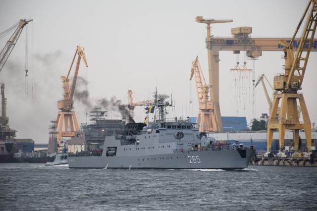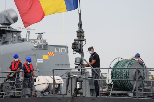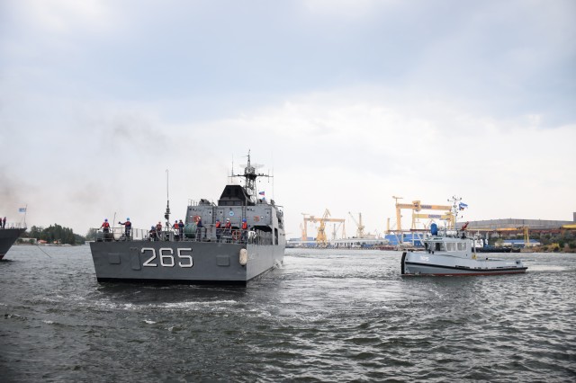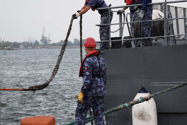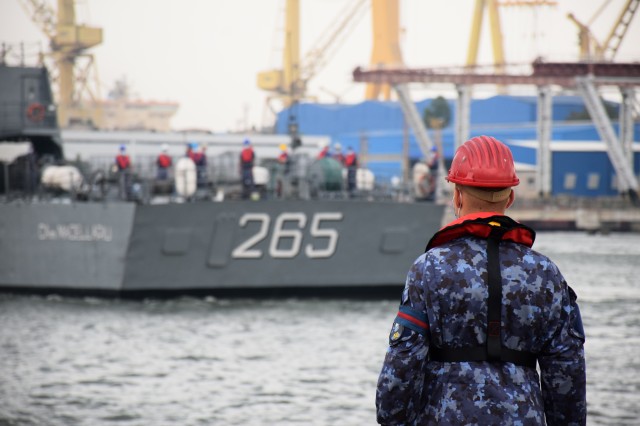 Sosirea Corvetei „Contraamiral Horia Macellariu” de la festivitățile organizate în portul Odessa, cu prilejul sărbătoririi Zilei Independenței Ucrainei