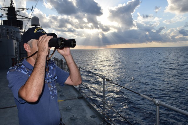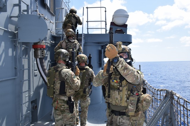 După plecarea din port, nava și-a continuat misiunile de monitorizare a traficului maritim din zona de responsabilitate, iar echipa de forțe pentru operații speciale de la bord a executat o misiune reală de inspecție la o ambarcațiune de pescuit, care nu avea niciun pavilion arborat și nu a răspuns la interogările radio. Imediat, s-au pus în aplicare procedurile standard NATO pentru astfel de situații, au fost prezentate condițiile misiunii și posibilele amenințări şi tot echipajul s-a pus în mișcare, fiecare militar ştiind ce are de făcut.