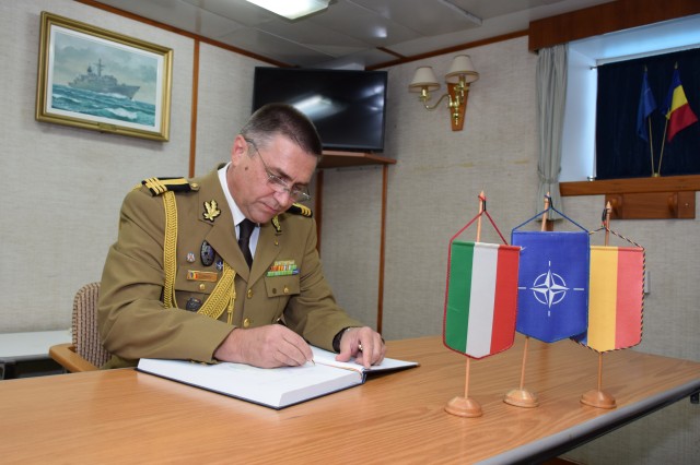 Aflată la conducerea grupării navale a Operației NATO „Sea Guardian”, din Marea Mediterană, fregata „Regina Maria” a făcut o escală în portul italian Augusta, din Insula Sicilia, pentru refacerea capacității de luptă și a plinurilor navei. În timpul escalei, atașatul militar al României în Republica Italiană, colonelul Iulian Barbu, a efectuat o vizită de informare la bordul navei, unde a avut întâlniri oficiale cu comandorul Bogdan Vochițu, ofițerul român care exercită conducerea grupării navale a Operației „Sea Guardian”, și cu comandantul fregatei „Regina Maria”, comandorul Adrian Gobjilă.