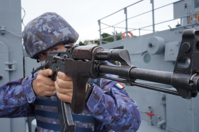 Nava de patrulare spaniolă ,,Rayo”, la bordul căreia este ambarcat comandantul grupării SNMCMG-2, comandor Javier Nunez De Aparicio, a asigurat protecția forțelor implicate în misiunile de luptă contra minelor. Totodată, nava comandant a desfășurat exerciții de inspecție și control la nave suspecte de trafic ilegal, în comun cu forțe ale Gărzii de Coastă georgiene.