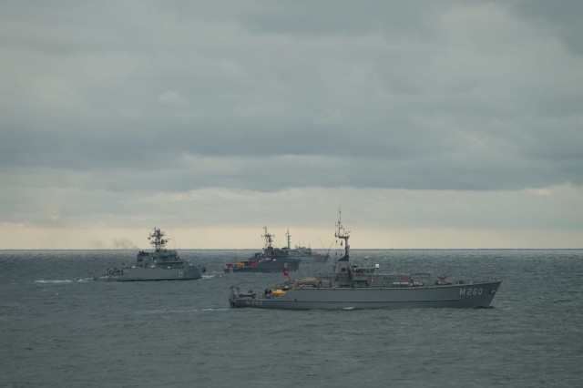 Gruparea Navală Permanentă NATO de Luptă Contra Minelor, SNMCMG-2 (Standing NATO Mine Countermeasures Group-2), formată din nava de patrulare spaniolă ESPS „Rayo” (P42) – nava comandant a grupării, vânătorul de mine italian ITS „Viareggio” (5559), vânătorul de mine turcesc TCG „Edincik” (M260), dragorul maritim bulgăresc BGS „Shkval” (62) și dragorul maritim „Locotenent Lupu Dinescu” (25), a acostat joi, 10 octombrie, în portul Samsun din Turcia.