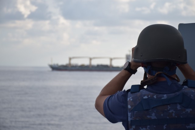 Primele zile de misiune din spectrul interdicției maritime și avertizării timpurii au condus la primele interogări efectuate în radiotelefon pe frecvențele internaționale de telecomunicații ale navelor civile de transport, care tranzitau raionul de responsabilitate al puitorului. Dialogurile purtate între comandanții navelor interogate și cel al navei militare românești s-au desfășurat fără probleme și în conformitate cu standardele stabilite la nivelul conducerii Operației IRINI. Obiectivul acestui set de întrebări aplicat de navele militare din grupare este acela de a asigura cooperarea și coordonarea în domeniul civil-militar în vederea respectării embargoului armelor impus Libiei, combaterii traficului ilicit de produse petroliere, droguri și persoane pe mare, precum și de a furniza răspunsul rapid în situația escaladării stabilității și securității din regiune.
