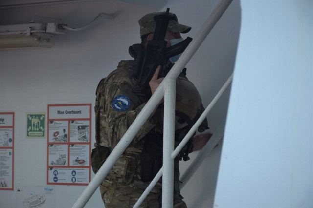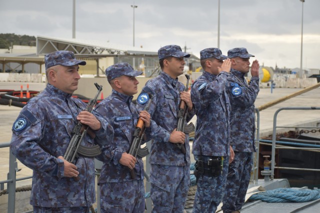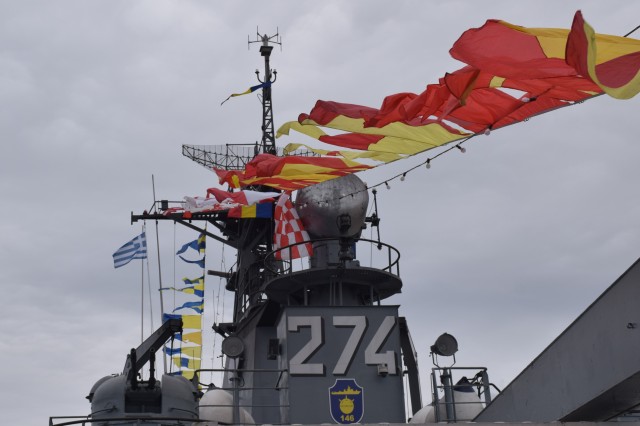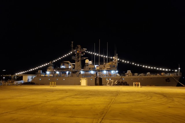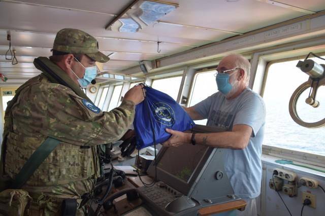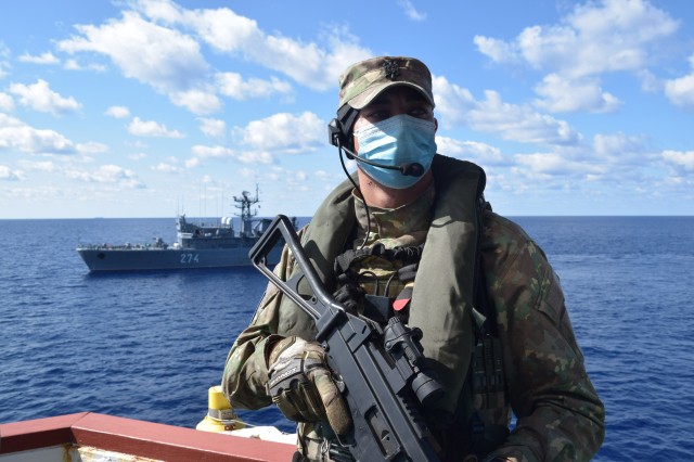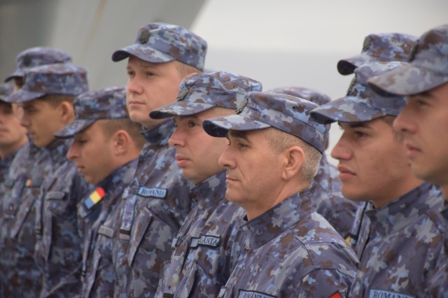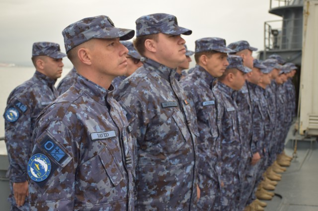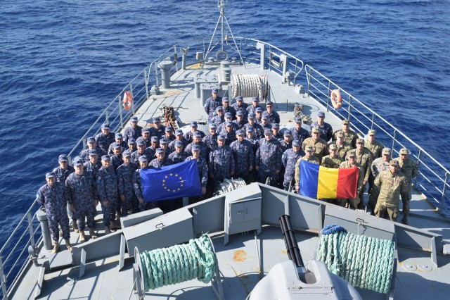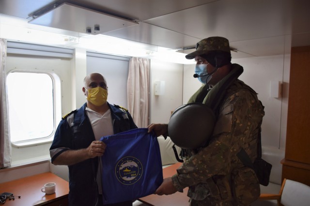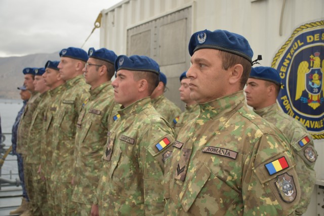 Luni, 25 octombrie, marinarii militari au participat la o ceremonie militară, organizată la bordul navei, pentru a marca Ziua Armatei României. Odată cu ridicare marelui pavoaz, comandantul navei, căpitan-comandor Daniel Gheorma, a dat citire mesajul șefului Statului Major al Apărării, transmis cu prilejul sărbătorii tuturor militarilor români în activitate, rezervă, retragere și veterani de război. Totodată, scafandrii militari de la bord au executat scufundări în vederea verificării operei vii a navei, moment în care au întins, mână de la mână, pavilioanele Uniunii Europene și României, pentru promovarea misiunii pe care o desfășoară în Marea Mediterană și pentru a cinsti, cu prilejul Zilei Armatei României, memoria tuturor celor care s-au jertfit pentru țară pe fronturile de luptă.