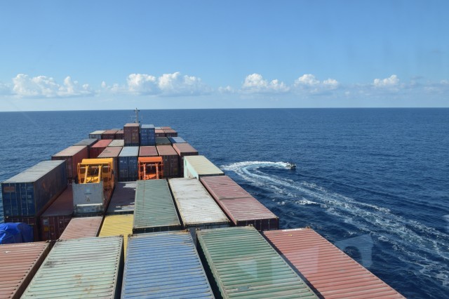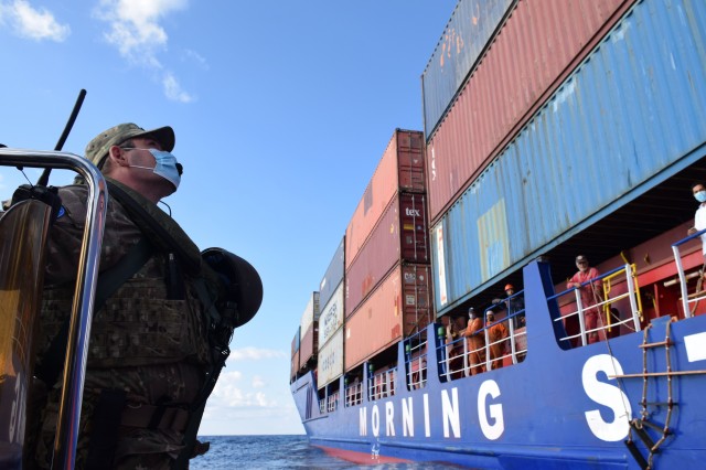 Echipajul navei militare a Forțelor Navale Române a interogat, în ultima lună, peste 80 de nave civile, iar, de la ultima escală de refacere a capacității de luptă, a executat încă două vizite de promovare a operației maritime.