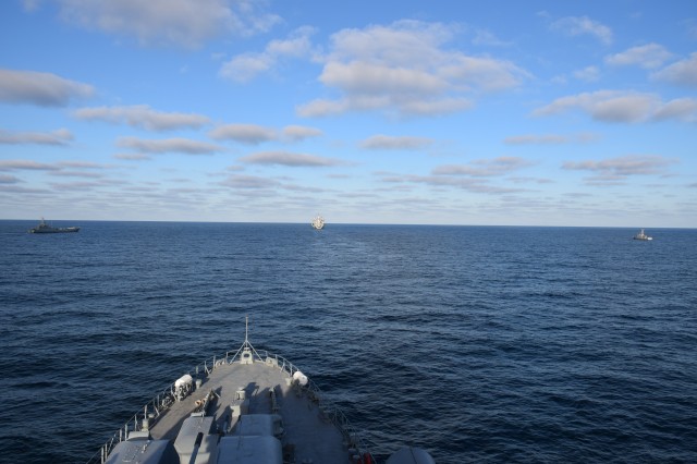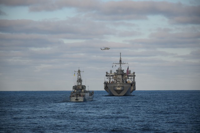 Șapte nave militare ale forțelor navale din România, SUA, Turcia și Ucraina au participat vineri, 12 noiembrie, la un exercițiu naval, care s-a desfășurat în apele internaționale ale Mării Negre din largul țărmului românesc.
