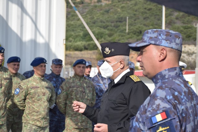 Locțiitorul șefului Statului Major al Forțelor Navale, contraamiral de flotilă Cornel-Eugen Cojocaru, a efectuat, în perioada 13-14 noiembrie, o vizită de lucru, în portul militar Souda Bay din Creta, pentru a analiza modul în care marinarii și scafandrii militari de la bordul puitorului de mine și plase „Viceamiral Constantin Bălescu” își desfășoară misiunile în cadrul Operației EUNAVFOR MED „IRINI”.