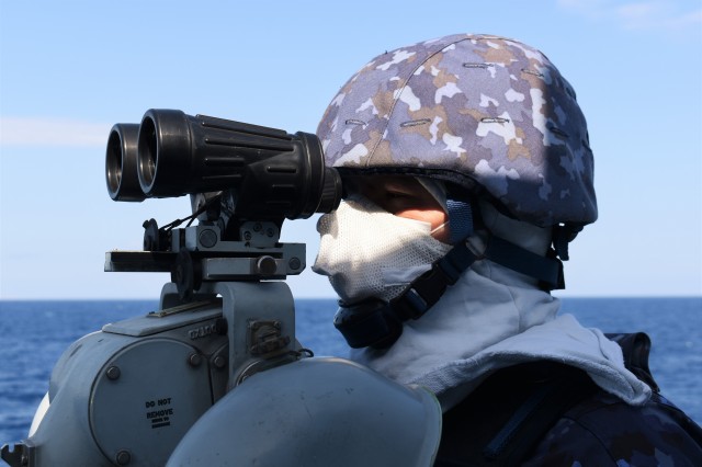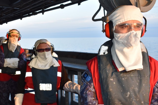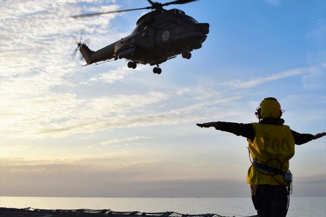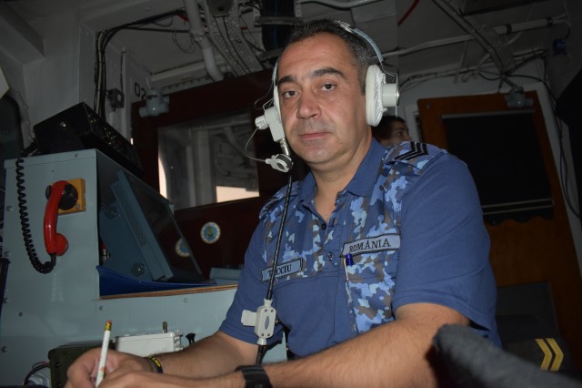 cadrul serialului. Acest lucru s-a realizat printr-o detecție timpurie a amenințării, echipamentul de la bordul fregatei permițându-ne asocierea emisiilor din jurul navei. Antrenamentele pe care le-am desfășurat, în mod constant, atât la țărm, cât și pe mare, cu aliați NATO sau cu parteneri, au fost benefice pentru punerea în practică, într-o situație aproape reală de război electronic, a tuturor procedurilor la standarde NATO."- a spus maistrul militar cls. a- I-a Ionuț Siea, maistrul militar specialist.