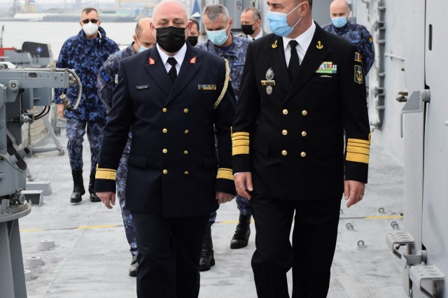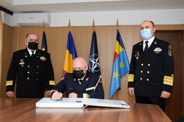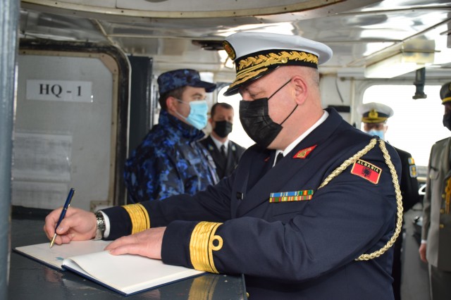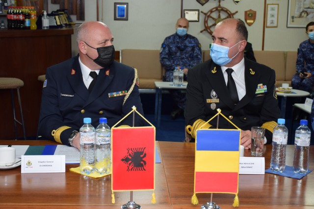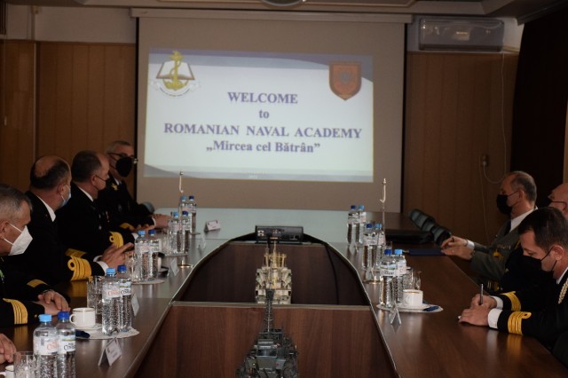 La invitația șefului Statului Major al Forțelor Navale, contraamiral Mihai Panait, delegația condusă de șeful Forțelor Navale din Albania, generalul de brigadă Ilir Xhebexhia, efectuează o vizită în țara noastră, în perioada 22-24 noiembrie. Oficialul militar albanez va vizita portul militar Constanța, fregata „Regele Ferdinand”, Academia Navală „Mircea cel Bătrân”, Centrul de Instruire, Simulare, Evaluare și Jocuri de Război al Forțelor Navale și Muzeul Național al Marinei Române