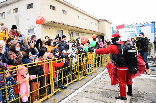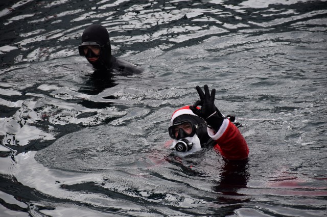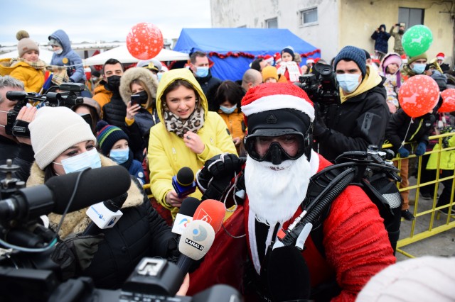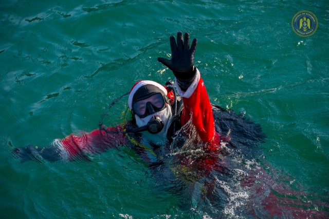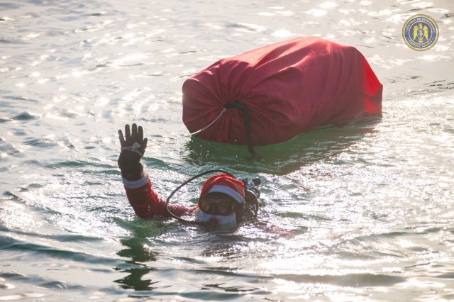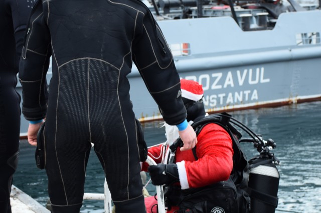 Moș Crăciun – Scafandru sosește în portul militar Constanța