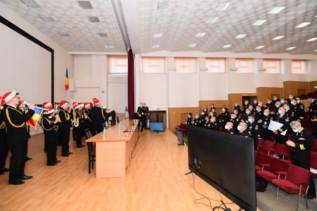 Muzica Militară a Forțelor Navale, condusă de colonelul dr. Cornel Ignat și Corul Școlii Militare de Maiștri Militari a Forțelor Navale „Amiral Ion Murgescu” au prezentat, joi, 23 decembrie, după terminarea ultimei ședințe operative din acest an, un spectacol de colinde de Crăciun. Recitalul a avut loc în Sala de Conferințe a Forțelor Navale din Constanța, în fața conducerii Forțelor Navale și comandanților de unități prezenți la ședință.