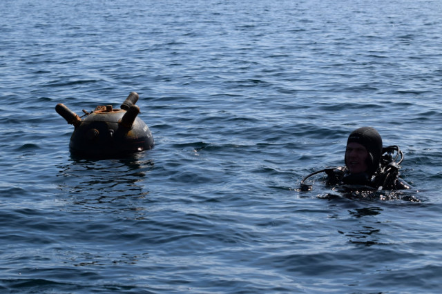 Misiune de neutralizare a unei mine marine, executată de marinarii militari români