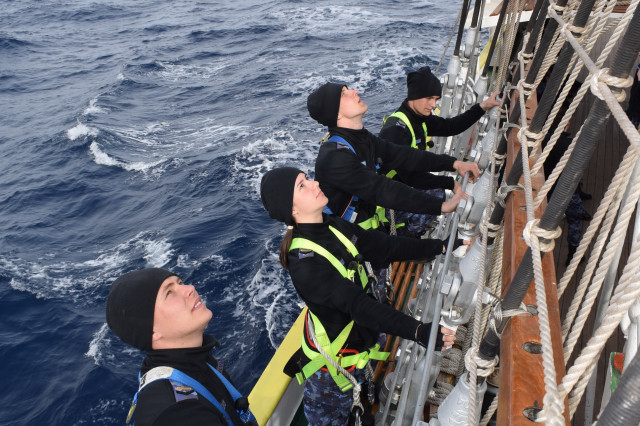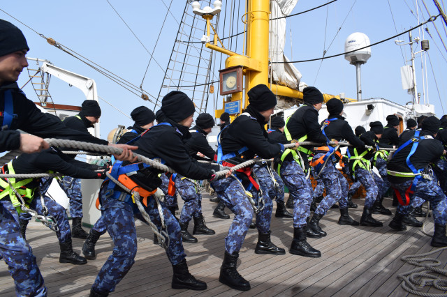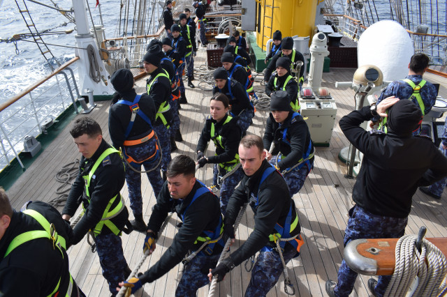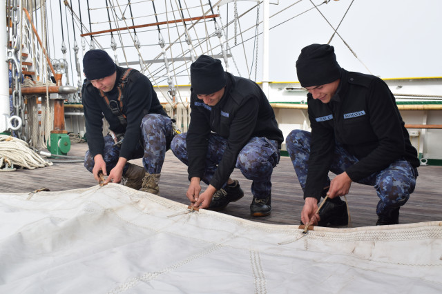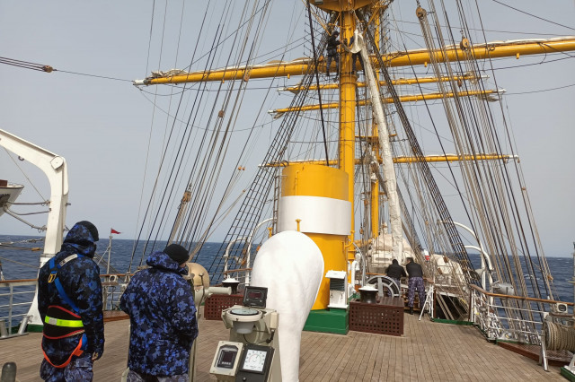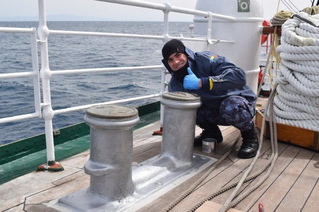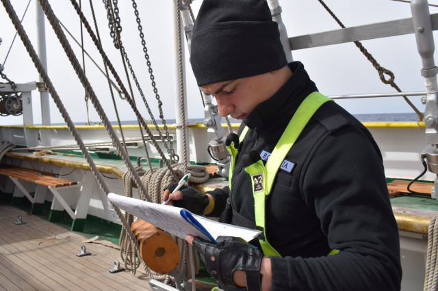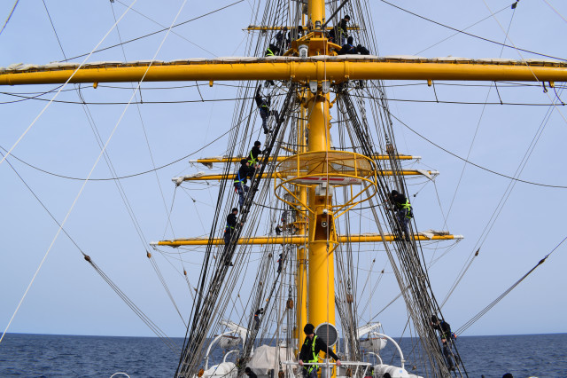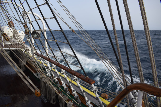 De cum se luminează, pe navă continuă activitățile de pregătire pentru festivalul maritim de la Sete, din Franța, acolo unde vom acosta pe 12 aprilie. La puntea centru se pregătește vela strai zburător artimon pentru învergare. Elevii militari încă nu au fost cooptați la astfel de activități, iar o parte dintre ei, liberi din servicii, stau așezați la prova, admiră peisajul și profită de orele în care au semnal la telefon pentru a lua legătura cu familiile și cu cei dragi pentru a le povesti experiențele de la navă și pentru a-i asigura că toți suntem bine.