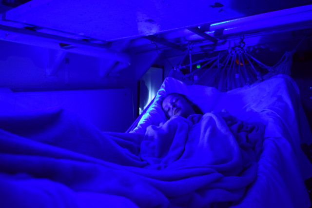 În timp de nava se înclină când spre stânga, când spre dreapta, în cadența dictată de valuri, elevii militari înfruntă fiecare răul de mare cum se pricepe mai bine. Unii au îmbrățișat încă de pe timpul nopții, cu statornicie, tromba, în timp ce alții profită și recuperează timpul de odihnă răpit de activitățile intense din zilele ceva mai plăcute, cu mare liniștită. Somnul, indus de legănatul valurilor, pare remediul suficient pentru a păcăli măcar pentru moment simptomele dizgrațioase ale răului de mare. Afară, pe punte, lemnul de tec a căpătat o culoare cafenie sub impetuozitatea valurilor, care ating 2 până la 3 metri.