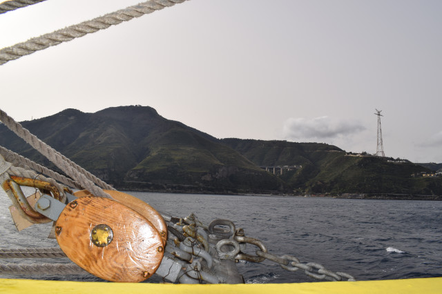 Miercuri dis-de-dimineață, chiar înainte de răsăritul soarelui sună alarma de deșteptare și suntem anunțați că tocmai am intrat în Strâmtoarea Messina, locul unde se întâlnesc apele Mării Ionice cu apele Mării Tireniene. Afară este încă întuneric, sunt 14 grade Celsius în aer, iar vântul suflă discret. La tribord se vede Italia continentală, într-o splendoare de lumini. La babord este Sicilia, cea mai mare insulă din Marea Mediterană.