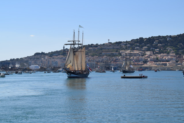 Am ajuns în Sète în dimineața zilei de 12 aprilie, la capătul a nouă zile de marș în care marea ne-a cam dat de furcă tuturor. Eram cu toții nerăbdători să pășim din nou pe sol, însă n-am bănuit că urma să ne trezim într-un decor excepțional, în care nava-școală „Mircea” a ocupat locul oaspetelui de onoare. Din păcate, vremea capricioasă de primăvară nu a permis sosirea noastră cu velele întinse și nici o paradă în adevăratul sens al cuvântului a tuturor velierelor invitate la festivalul maritim din Sète.