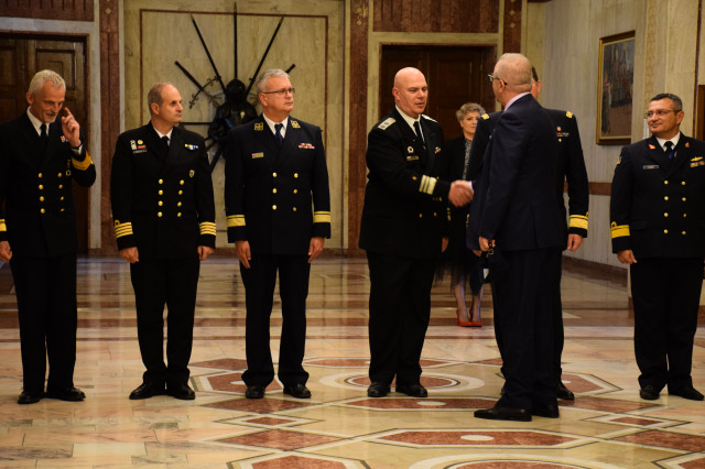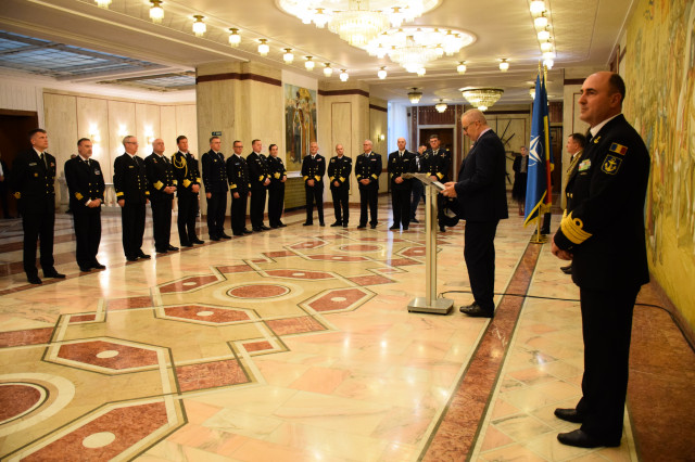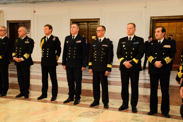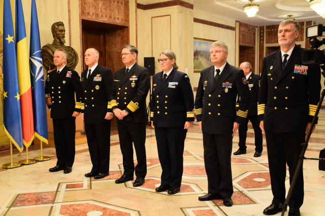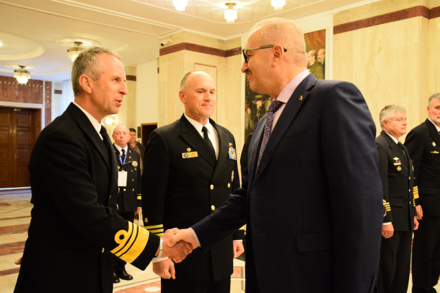 Comandanților Marinelor Militare din Europa prezenți în România au fost primiți miercuri, 11 mai, de către ministrul apărării naționale, domnul Vasile Dîncu, la sediul MApN. În cadrul întrevederii, oficialul Guvernului României a subliniat rolul marinelor militare europene în mediul geopolitic actual, precum și importanța dezvoltării interoperabilității dintre forțele navale europene prin participarea la misiunile și operațiile navale ale NATO și Uniunii Europene.