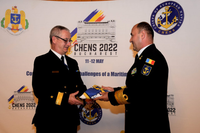 Forțele Navale Române organizează Reuniunea Comandanților Marinelor Militare din Europa (Chiefs of European Navies, CHENS), în perioada 11-12 mai 2022, la București, prilej cu care șeful Statului Major al Forțelor Navale, contraamiral Mihai PANAIT, predă președinția acestui forum european omologului său irlandez, Commodore Michael MALONE.