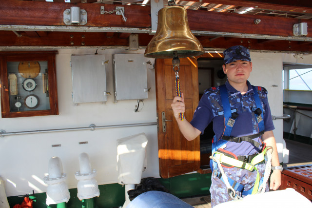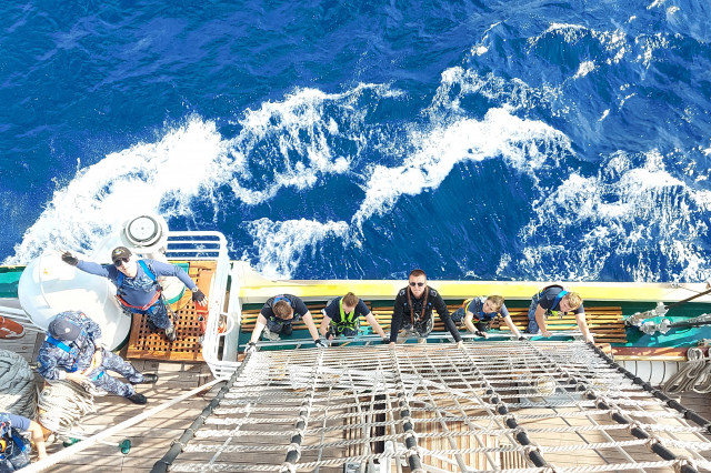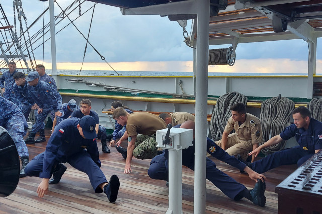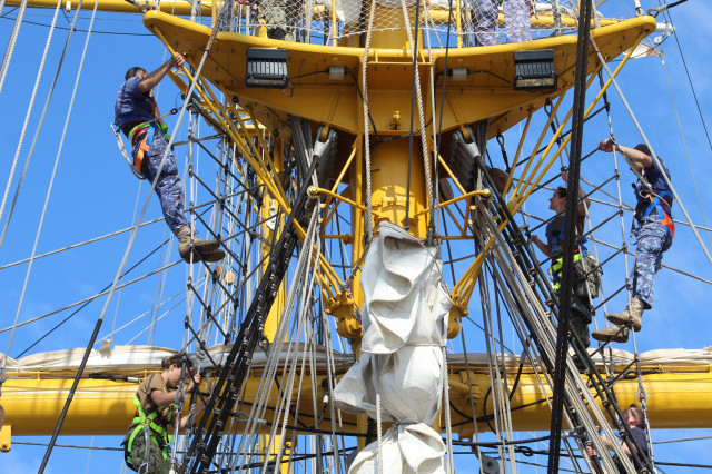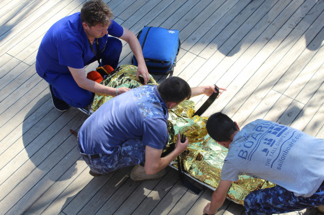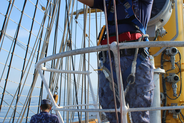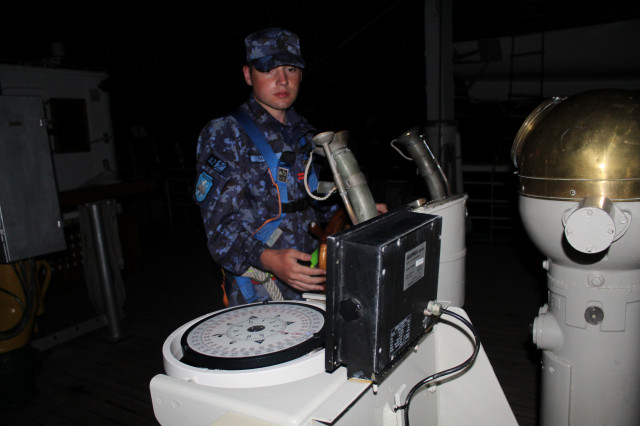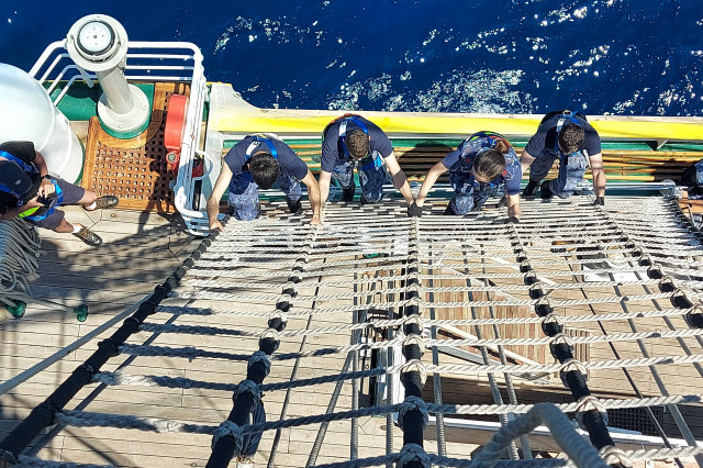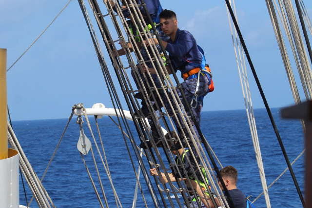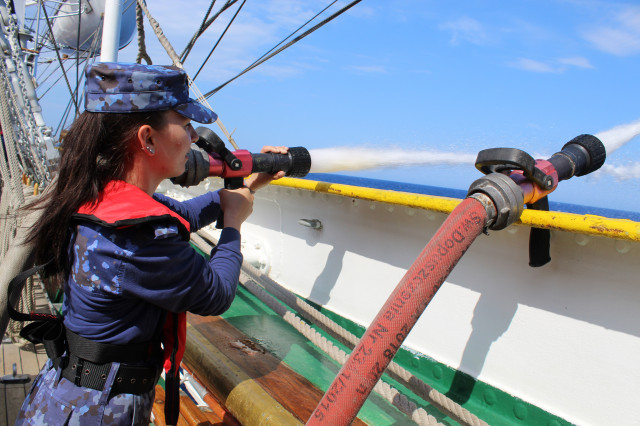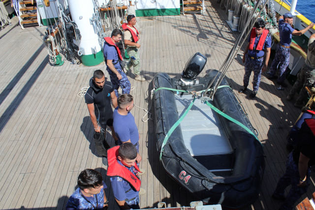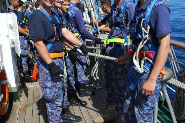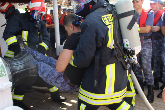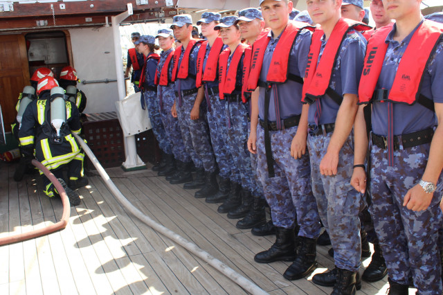 În cele opt zile de marș care au trecut de la plecarea din portul Constanța, la puntea centru, pe dunetă sau pe teugă instructorii au continuat instruirea cadeților. Au fost exersate antrenamentele la brațarea vergilor și urcarea în arboradă, până la gabie, apoi în crucetă. Au urmat două antrenamente pentru asigurarea vitalității la bordul navei, un exercițiu de stingere a unui incendiu, în spațiile interioare și pe punte, iar al doilea a fost un exercițiu demonstrativ de salvare a unui om căzut în apă, prezentat de Lt Ciprian Popa, comandant grup navigație și observare, care ne-a spus că „reușita unei manevre de salvare depinde de repeziciunea și siguranța lansării la apă a bărcii de salvare, recuperarea omului, aducerea acestuia la navă în cele mai bune condiții și de acordarea primului ajutor”.