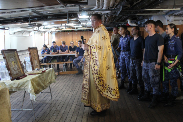 Chiar dacă marea a fost zbuciumată, în cazarma trei sau pe punte, teoria și practica marinărească ocupă cea mai mare parte a timpului petrecut de cadeții anului II pe Nava-Școală ,,Mircea”. Duminică și luni, la primele ore ale dimineții, în atenția echipajului și a studenților, preotul marșului Trandafir Dragoș a ținut slujba Sfintei Liturghi – Pogorârea Duhului Sfânt (Rusaliile sau Cincizecimea) și Liturghia Sfintei Treimi.