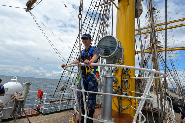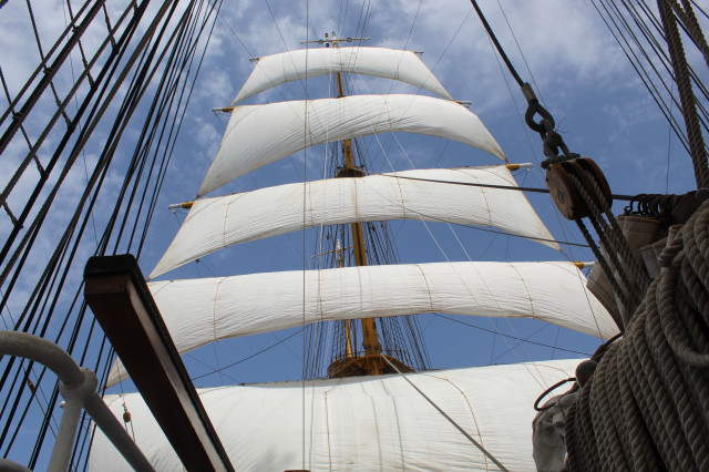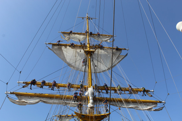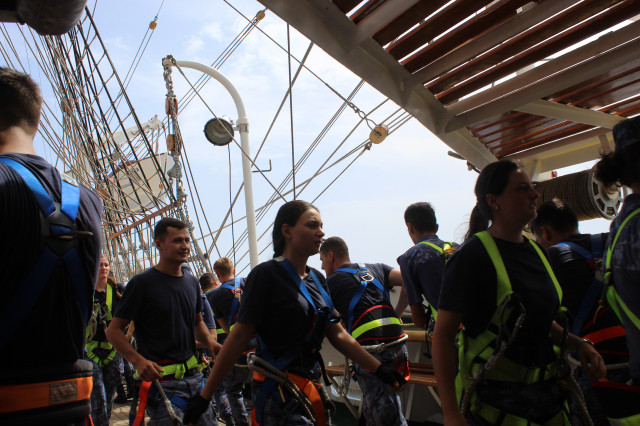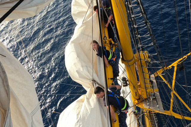 În continuarea manevrei au fost desfășurate și două din cele patru focuri ale navei, pentru un surplus de velocitate. La coborârea studenților din arboradă, tuturor li se citea pe chip seriozitatea și satisfacția pentru faptul că și-au îndeplinit misiunea cu mult curaj. ,,Marșul la bordul navei-școală ,,Mircea" este o etapă esențială în formarea noastră, a studenților de anul II din cadrul Academiei Navale ,,Mircea cel Bătrân”, ca viitori ofițeri de marină. Un element important este simbioza dintre teoria și practica predate în fiecare zi de instructorii noștri, dar și de echipaj, sub atenta îndrumare a comandantului navei, comandorul Mircea Târhoacă. La prima vedere nu pare greu si nici foarte sus, dar în momentul în care apar factorii externi, în principal valurile și vântul, totul devine o adevărată aventură. De-a lungul zilelor la bord, am luat parte la multe ore de pregătire, cu urcări în arboradă, cu trecerea prin crucetă, toate acestea necesitând tehnică, îndemânare dar și curaj. Luând pas cu pas acest labirint al cunoașterii, am parcurs toate etapele până am fost repartizat la verga zburător. Încă de la baza sarturilor am fost cuprins de entuziasm, iar pe măsură ce urcam în arboradă a apărut și adrenalina. Trecerea de pe arbore pe vergă este o altă provocare, însă odată ajuns acolo predomină concentrarea, deoarece fiecare mișcare contează și procesul de întindere a velelor este unul complex. Ajuns aproape de vârful arborelui mare am simțit sub tălpi fermitatea țapapiei și asigurat în centura care-mi conferea siguranță am fost răsplătit cu o priveliște deosebită și satisfacție pe măsură. După fiecare activitate în arboradă aștept cu nerăbdare posibilitatea de a repeta experiența”, ne-a spus studentul caporal Cătălin Vlad.