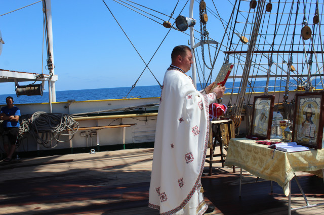 Joi, 29 iunie, creștinii - ortodocși îi pomenesc pe Sfinții Apostoli Petru și Pavel. Cu această ocazie, la puntea centru, preotul navei, plutonierul adjutant Trandafir Dragoș a oficiat prăznuirea Sfintei Liturghii a celor doi Apostoli.